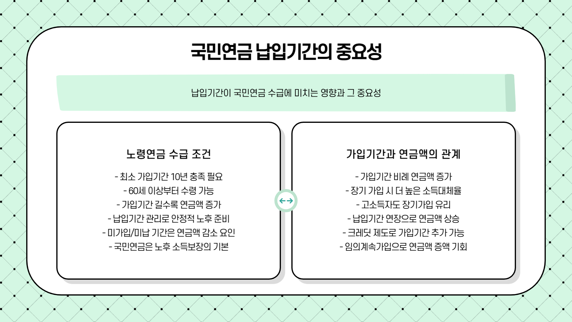 - 연금 수령 여부 및 금액을 결정하는 핵심 기준입니다.